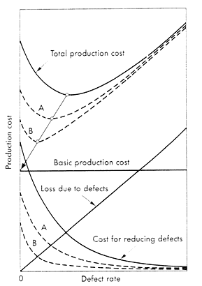 近藤良夫( Yoshio Kondo )博士是日本相當資深並享有盛名的學者,近二、三十年來近藤良夫博士在全球品管領域方面的知名度也非常高。年近八十的他,退休後的生活仍舊相當活躍,時常受邀至國外演講。透過狩野紀昭博士的引薦之下,近藤博士特別撥冗接受筆者的專訪( 2003 年 8 月 20 日)。於名古屋參觀畢豐田汽車公司之後,筆者隨即轉往京都拜會這位德高養韶的品質大師,希望讓國人對大師的品質理念有更多的認識與瞭解。 近藤良夫的個人學經歷 近藤良夫的大半輩子都在日本京都大學渡過。 1945 年畢業自京都大學冶金系,曾擔任該校冶金系的副教授( 1950-1961 )、教授( 1961 至 1987 年退休)及工學院院長( 1983-1985 )。 1958 年獲京都大學工程博士, 1962-1964 年曾至美國 MIT 擔任副研究員, 1988 年擔任中國東北工學院及南斯拉夫之歐洲和平發展中心的名譽教授,目前則是京都大學的名譽教授。 近藤教授退休後, 1992-1993 年任日本品管學會會長, 1994-1996 年任 IAQ 會長, 1997-2002 年任 IAQ 理事長。近藤教授除了是美國品管學會院士( 1988 )、菲律賓品管學會名譽會員( 1992 )、日本品管學會名譽會員( 1994 )、京都大學學士山岳會名譽會員( 1997 )之外,同時也獲得許許多多的獎項:包括日經的 Quality Control Literature Prize ( 1967 與 1993 )、美國礦業工程師學會 EMD Science Award ( 1971 )、日本戴明獎( 1971 )、美國品管學會 E. L. Grant Award ( 1977 )、日本金屬學會 Tanigawa-Harris Award ( 1981 )、美國品質學會 E. Jack Lancaster Award ( 1998 )、亞太品質組織 Harrington-Ishikawa Medal ( 1998 )、日本天皇的旭日重光獎章( 2000 )、美國品質學會 Distinguished Service Medal ( 2002 )、美國品質學會 Ishikawa Medal ( 2003 )等。 近藤教授在其二個主要研究領域:冶金與品質管理,已發表將近 600 篇論文,所出版的二本著作: Human Motivation 與 Companywide Quality Control (本書於 1993 年榮獲日經的 Quality Control Literature Prize )也相當受到重視,已有許多國家不同語言的翻譯版本。近藤教授目前主要的研究興趣為 Human motivation 、 Creativity 、 Leadership ,並喜歡參與相關的品質管理活動。 品質比生產力或成本更貼近人類的深層需求 近藤教授對品質有相當獨到的見解,他特別喜歡從人類最原始的需求以及最深層的動機來看品質。他分析道,現在的企業最重視的莫過於生產力、成本與品質。人類有「生產力」的觀念是在工業革命的時候,也就是至目前止不過約有 200 年的歷史;而人類在約在一萬年前停止狩獵,開始生產自己的食物,並與別人進行交換東西,逐漸有了「成本」的觀念。相對地,人類很早就有品質的觀念了。人類的老祖宗,大約在一百萬年前,從其使用的工具材質中(如石頭、銅、鐵),不難可以看出其對品質的不同要求。譬如易裂的陶瓶可能不適合用來儲存水,使用鋒利一點的「鋤」和「犁」來犁田,可能就會導致豐富的秋收。我們從人類的歷史來看,「品質」是要比「成本」和「生產力」要長得多了。 若是從顧客滿意的角度來看,近藤教授認為,一般人不會因為製造商的低成本或高生產力而購買該公司的產品,除非製造商因此而降低售價回饋給顧客,否則公司改善成本或生產力對顧客而言,並不會直接就讓顧客開心。然而品質卻是一般人的共識,人們天生就喜歡美好的事物。近藤教授認為只有品質才是製造商與消費者共同所關心的事,雖然製造商與消費者各對品質抱有不同的觀點。由此可知,品質是最接近人類最原始的動機與需求了。 那麼,品質如何影響企業的生產力與成本呢?戴明曾經說過:「當品質提昇,生產力也會跟著提昇」。近藤教授則加以補充,如果為了提昇品質,花了很多次的檢驗,這樣生產力是不會提昇的。只有在現場人員與製程上游設計人員充分合作,發展有效的管理方法,在上游即預防不良品的產生,這樣品質與生產力才會同時提昇。 此外,對於品質與成本之關係,近藤教授進一步地分析。假設總生產成本由 (1) 基本的生產成本(這與產品之不良率無關), (2) 由不良率所帶來的損失, (3) 降低不良現象的成本,等三個項目所組成,那麼我們可獲得一個總成本與不良率之關係曲線(如圖一所示),在此總生產成本曲線上的最低點所對應的,即是最佳的不良率。若要以最經濟的方式生產,就要瞄準這個所謂的最佳的不良率。近藤教授認為這種說法有二個盲點。首先,這種做法並未提供顧客任何的品質保證,顧客不會因為你的「最佳不良率」而來買你的東西,生產製程的最終目標是「零不良率」,而不是「最佳不良率」。其次,此關係圖也未考慮到競爭者,這樣是不合理的。